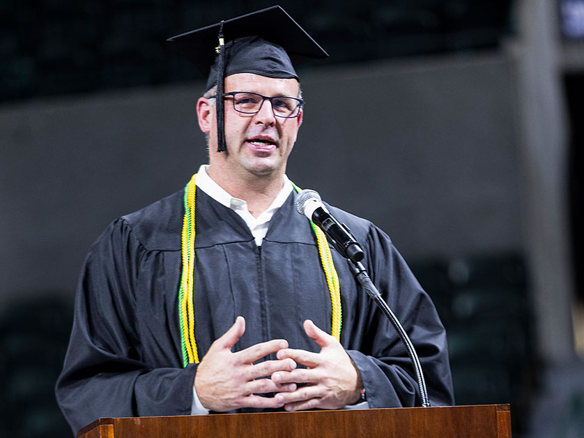 “We could all look around and accept today’s challenges as insurmountable. Or we can use them to inspire action. See the word “lookout” not as a warning but as an invitation to make a difference on something that matters. Be on the lookout for the opportunity to change. To learn. To take risk. To persist. And to lead. Always strive to be better… that way, I know, you will make the world better.”