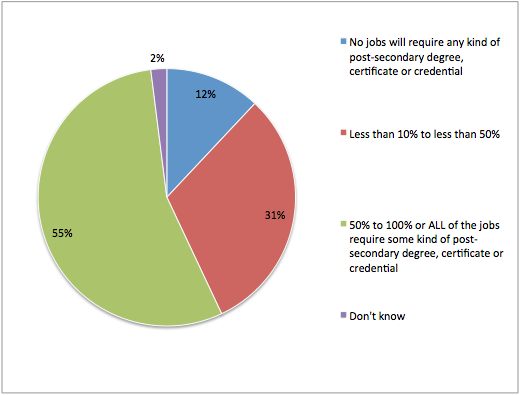 - In ten years, business leaders say 55% of jobs at their organizations will require some kind of post-secondary degree, credential or certification.*