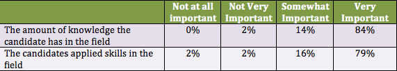 Business leaders indicated in the survey that they are looking for candidates with specific skills, experience and knowledge when making hiring decisions. A candidate must be able to possess these key factors to get a good job. - In addition to experience, business leaders most want employees to possess strong communication skills, including writing and speaking skills.