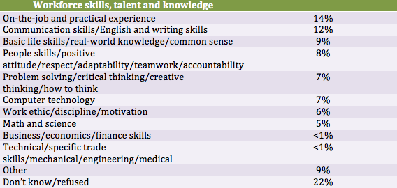 To succeed in the workforce in the coming years, business leaders specified in the poll that employees should develop strong communication skills, including writing and speaking, in addition to the on-the-job, practical experience required in their chosen field.