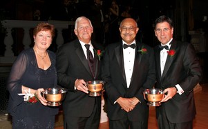 (left to right: John Martinson, Eileen Martinson, Dr. George A. Pruitt, Lauren Wooden, who accepted the award on behalf of her father, Ernest.)