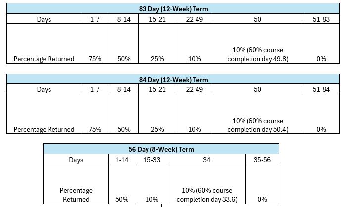 A table of the return schedule for unearned funds.